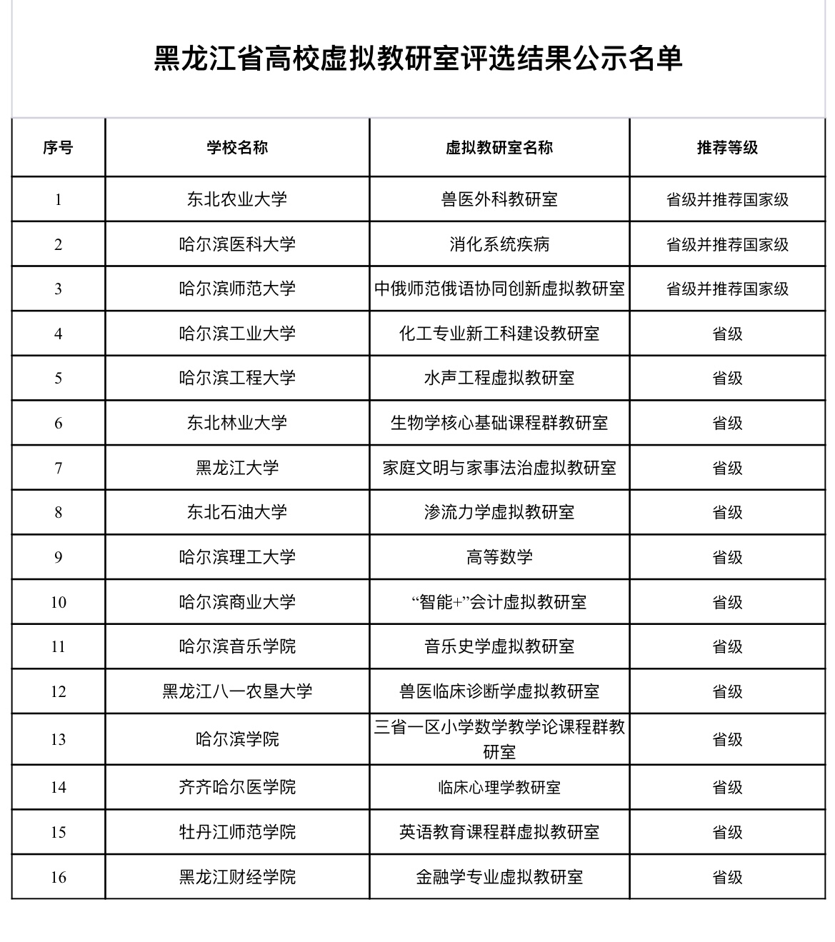 日前,黑龙江省教育厅公布了2021年省级虚拟教研室评选结果,共评出16个省级虚拟教研室,我校“金融学专业虚拟教研室”位列其中,是我省唯一入选的民办高校基层教学组织。