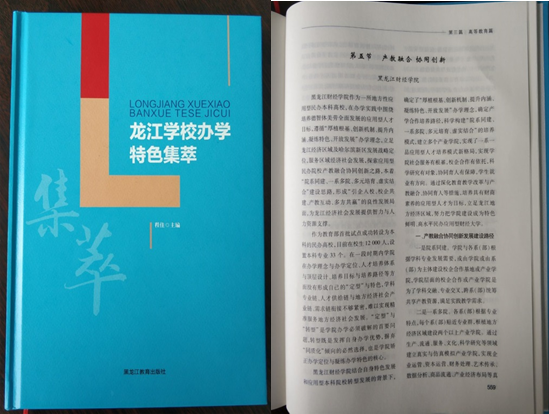为热烈庆祝中国共产党建党100周年,全面总结黑龙江省教育事业发展成就,打造龙江教育品牌,促进“十四五”时期黑龙江省教育高质量发展,黑龙江省教育科学领导小组办公室编辑出版了《龙江学校办学特色集萃》一书。我校撰写提交的“产教融合 协同创新”特色成果材料经过编委会三次评审及校对成功入选该书。