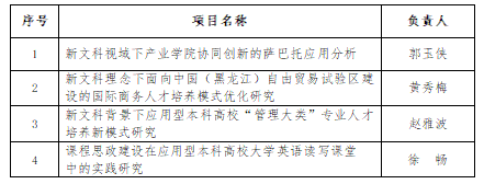 近日,《黑龙江省教育厅关于公布首批国家级和省级新文科研究与改革实践项目的通知》正式发布,我校四个项目入选首批省级新文科研究与改革实践培育项目。