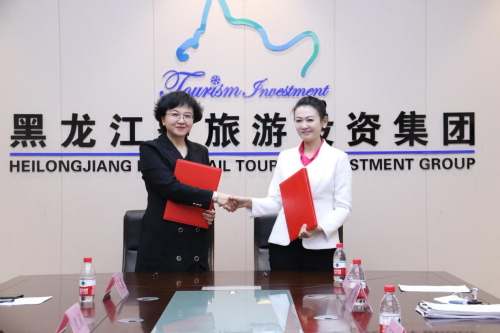 庹莉与马野萍代表双方签订《黑龙江财经学院战略合作协议》。仪式结束后,与会人员参观了旅投文化公司办公区,就校企合作落地进行了深入探讨。