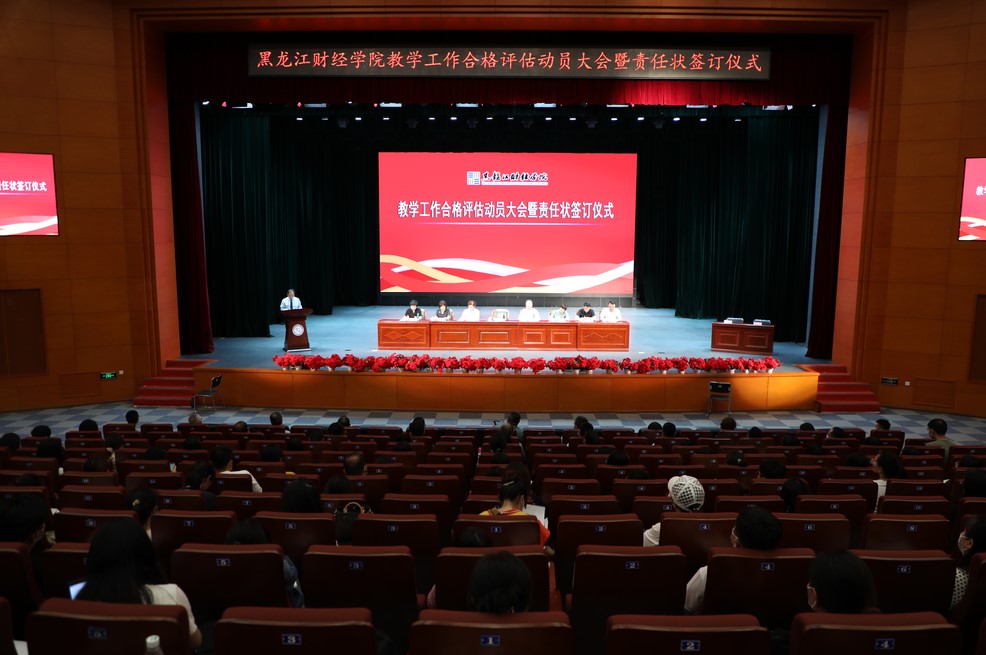 6月15日,我校在音乐厅举行教学工作合格评估动员大会暨责任状签订仪式,校长于长福作动员讲话,党委书记裘杰主持会议,副校长庹莉对迎评工作任务进行安排部署。