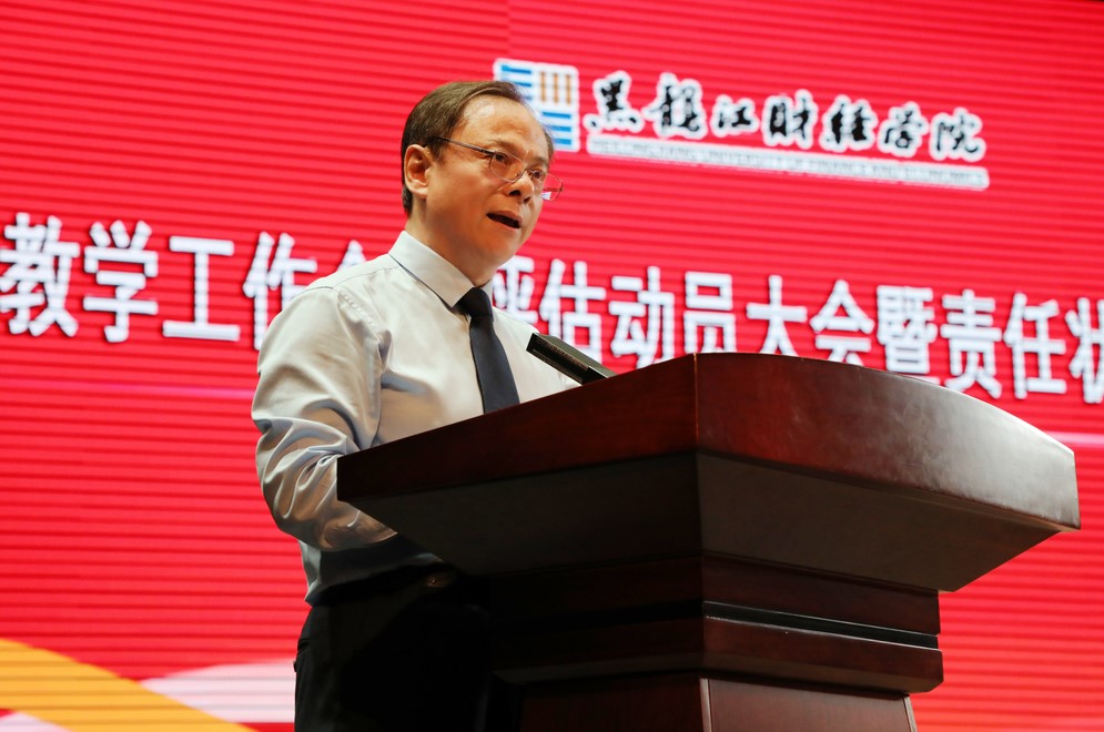 于长福指出,此次会议是一次举全校之力、集全校之智顺利通过教学工作合格评估的动员大会;是一次学校面临未来生存发展、转型发展、内涵发展、特色发展、持续发展的动员大会;是一次学校进入发展新阶段、贯彻新发展理念、构建新发展格局、推动民办高校高质量教育教学体系建设的动员大会;是一次学校实施“1331”育人工程、创新多元化人才培养路径、建设一流民办应用型财经大学的动员大会。此次会议的主题是坚持社会主义办学方向,落实立德树人根本任务,统一思想、振奋精神、鼓足干劲,全面深化教育教学改革,以内涵质量建设带动评估整改为主线贯彻学校教育教学工作始终,按合格评估“4321”指导思想与指标体系严格衡量自身不足,查漏洞、补短板,同频共振、协同推进,全力打赢教学工作评估攻坚战。