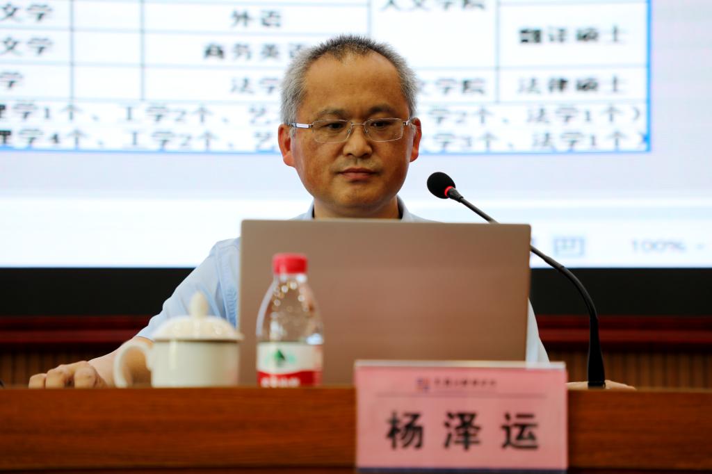 杨泽运教授以《学科专业一体化建设的路径和策略》为题,从学科建设、专业建设内涵、目标及路径三个方面进行了宣讲,并结合我校实际,提出具有前沿性、实操性、建设性的指导意见。报告思路清晰、论证充分、案例详实、深入浅出,具有很强的理论性、针对性和指导性,引发了参训教师的思考和讨论。