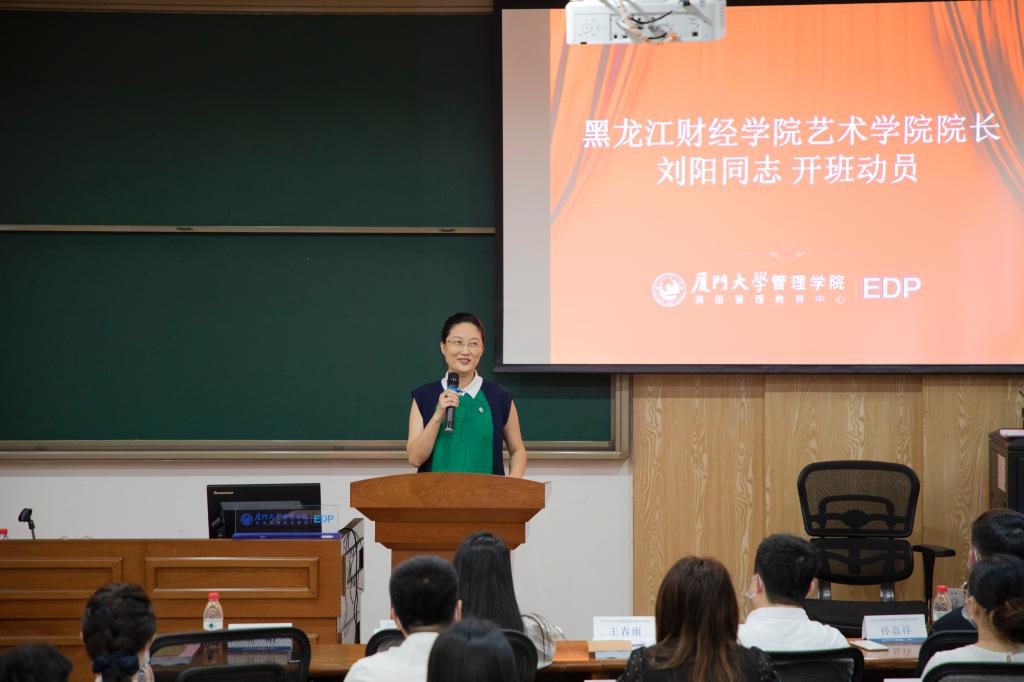 开班仪式在厦门大学嘉庚一号楼举行,刘阳代表学校对厦门大学管理学院EDP中心表示感谢,对参训学员提出了要求,希望大家严格遵守纪律和防疫要求,牢固树立安全意识,珍惜难得的学习机会,强化研讨交流,内化学习成果。