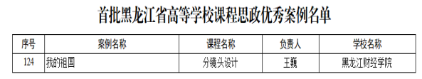 我校教师王巍负责的《分镜头设计——我的祖国》入选首批黑龙江省高等学校课程思政优秀案例。