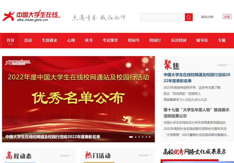 中国大学生在线由教育部主办,高等教育出版社承办,是国内最大的面向全国大学生开展思政工作的主题教育网站,工作覆盖全国2600余所高校,在全国近600所高校设立了大学生校园网络通讯站。
