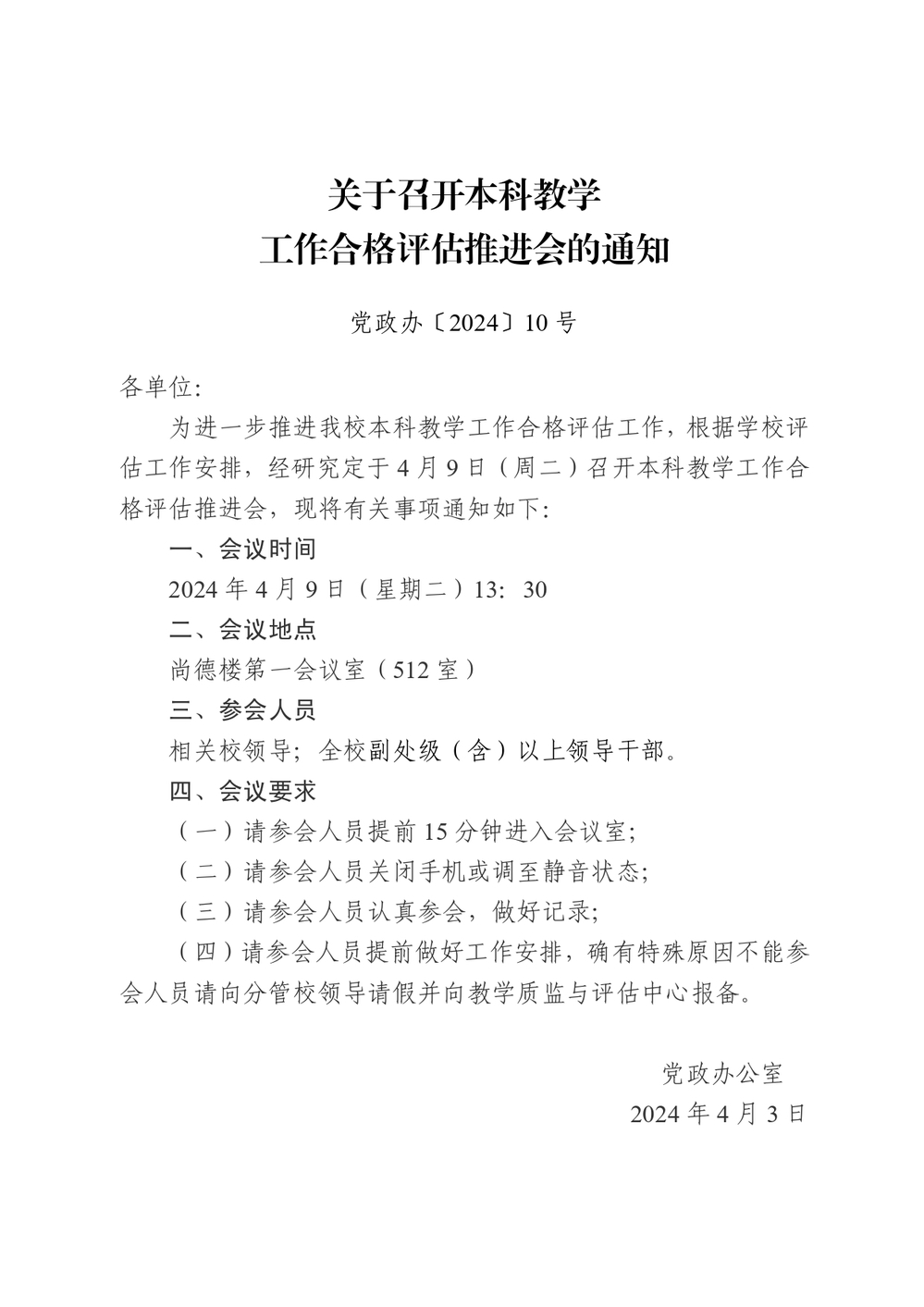 关于召开本科教学工作合格评估推进会的通知