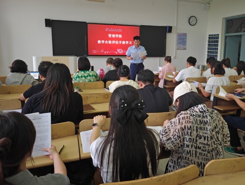 2024年8月22日下午13:30管理学院在学尚学楼624教室召开了《教学工作合格评估学习手册》学习会。此次学习会旨在深入理解并贯彻我校教学工作合格评估的各项要求,明确评估指标,促进教学管理的规范化、科学化,推动学院育教学质量的全面提升。